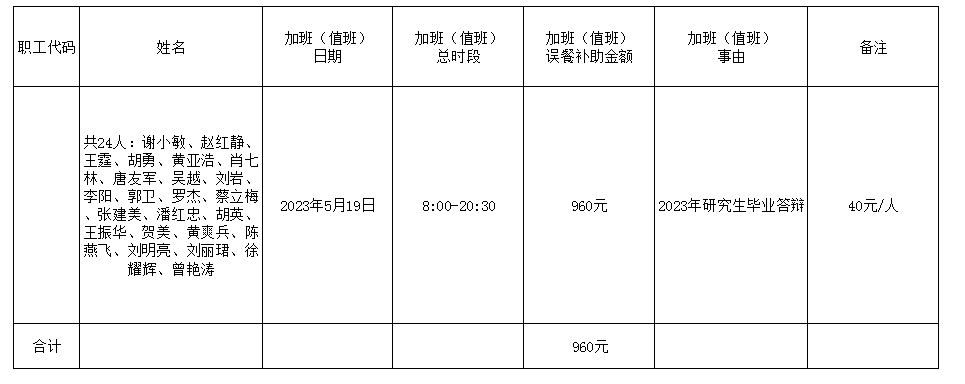 根据《英国威廉集团加班(值班)误餐补助管理办法(试行)》(长大校发【2019】83号)文件规定,现对资环学院加班(值班)误餐情况(2023年5月19日)进行公示,如果对加班(值班)误餐情况有异议,可以通过电话或电子邮件等方式向资环学院办公室反映。